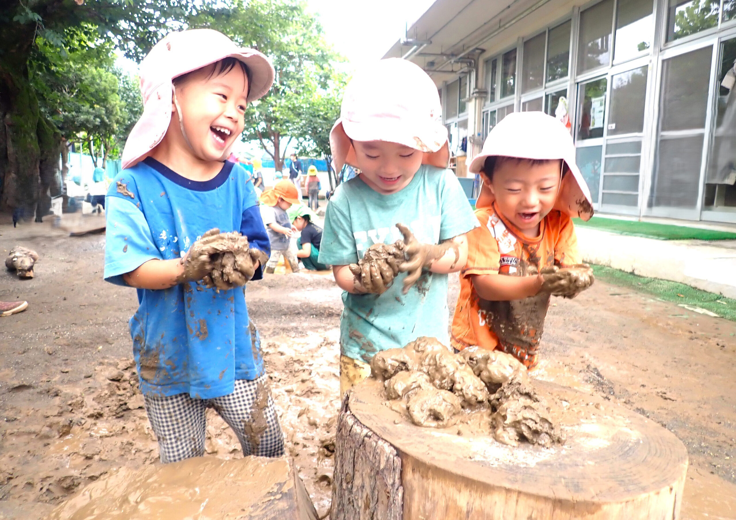 「学びのキャンバス」で、日本の明るい未来を創り出す様子が、泥遊びを通じてキラキラ輝いて映っています。